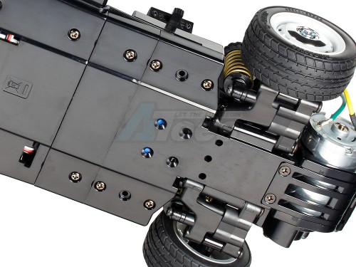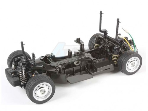 The M-06 chassis features a Rear-Mounted Motor, Rear-Drive setup and features a longitudinally-mounted battery pack, with R/C radio gear positioned on either side for optimum balance and low center of gravity. 4-wheel double wishbone suspension is equipped with 60D radial tires at the front and 60D super grip tires at the rear. In addition, a 3-piece steering linkage offers nimble handling response.