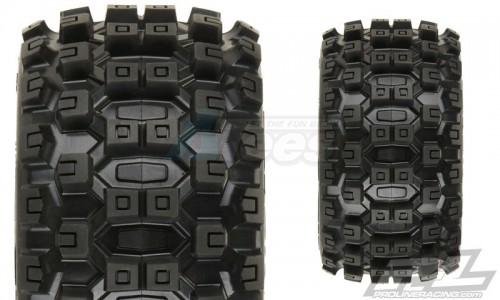 The Badlands MX28 is a true All-Terrain tire that will find traction on any surface but is best suited for loose & loamy dirt, mud or grass. Just imagine your truck throwing up huge rooster tails with these awesome looking tires! Compared to the previous Pro-Line Badlands tires, you can expect even better traction, improved wear resistance and enhanced style.