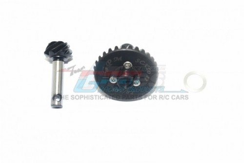 GPM Racing Harden Steel #45 Diff Bevel Gear 30T & Pinion Gear 8T - 3Pcs Set Black for Axial SCX10 II