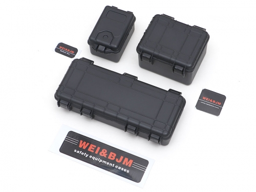Scale Accessories - 1/10 Scale Safety Equipment Cases Hard Luggage Box Set (3) Black by Team Raffee Co.