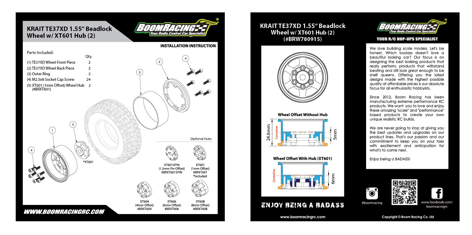 - Factory description: Boom Racing TE37XD KRAIT™ 1.55 Deep Dish Aluminum Beadlock Wheels w/ XT601 Hubs (2)