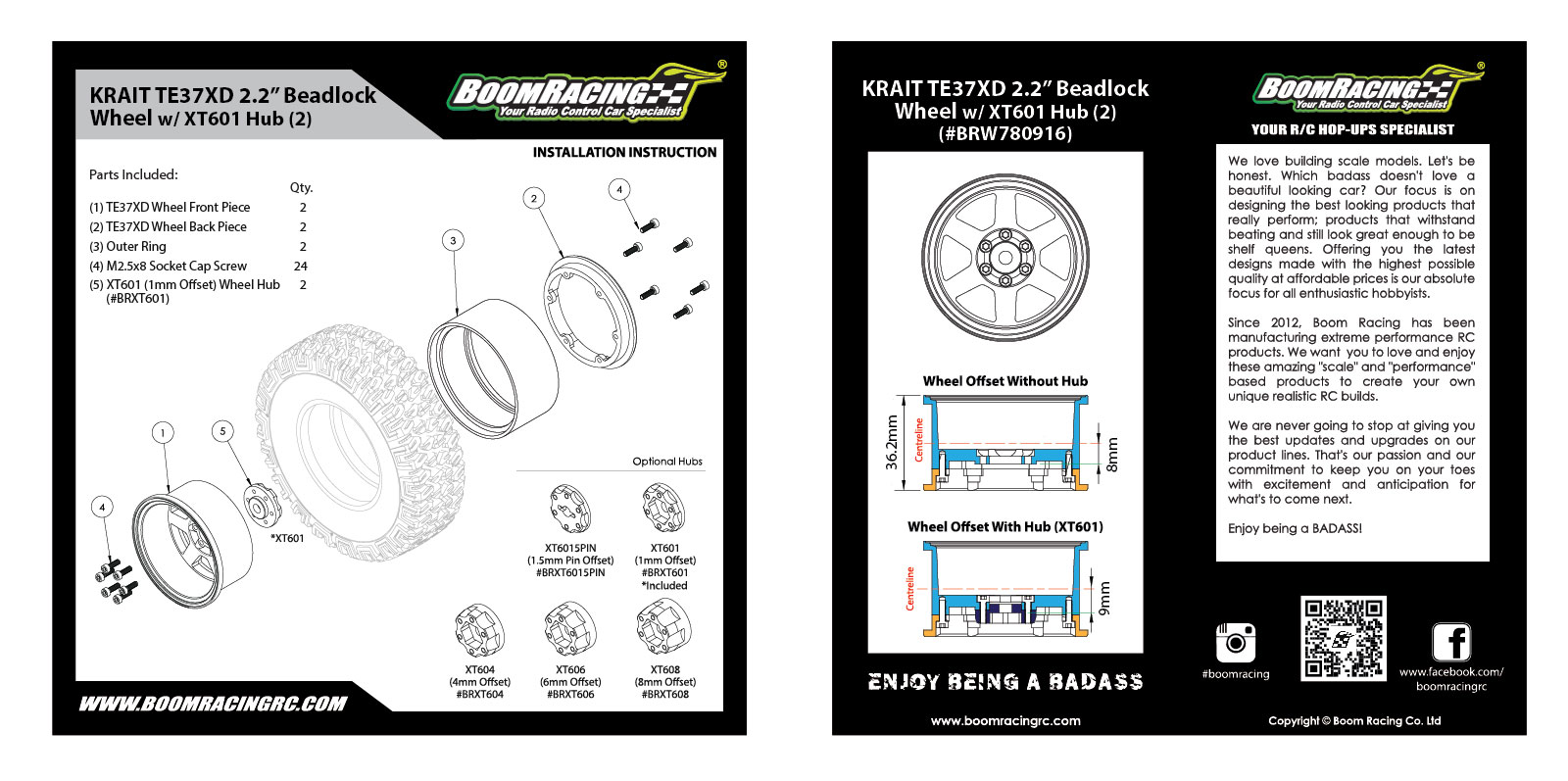 - Factory description: Boom Racing TE37XD KRAIT™ 2.2 Deep Dish Aluminum Beadlock Wheels w/ XT601 Hubs (2)