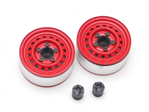 1.55" 16-Hole Classic Steelie Reversible Beadlock Wheels (Rear) w/ XT504 Hubs Red by Boom Racing