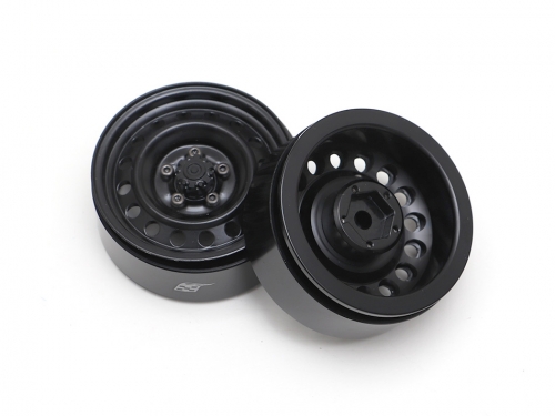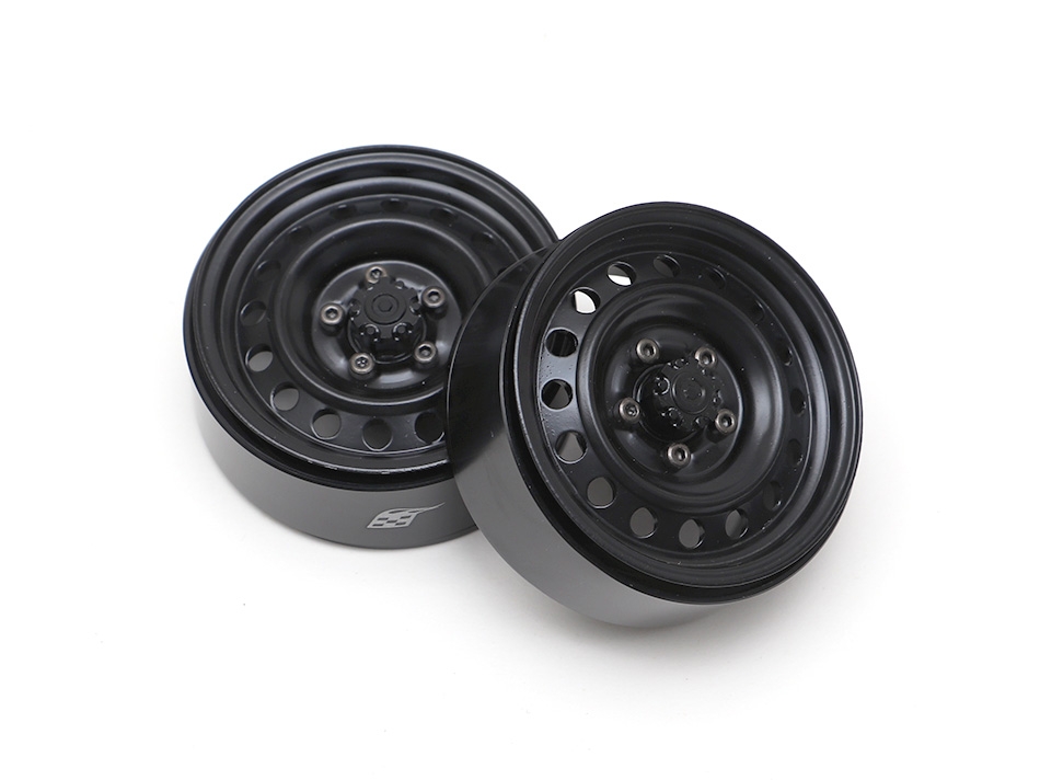1.9" Narrow 16-Hole Classic Steelie Reversible Beadlock Wheels (Front) w/ XT504 Hub (2) Black by Boom Racing