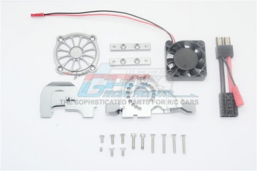 Aluminium Motor Mount+Upper Spur Gear Case Cover W. Cooling Fan - 19Pcs Set Gun Metal by GPM Racing