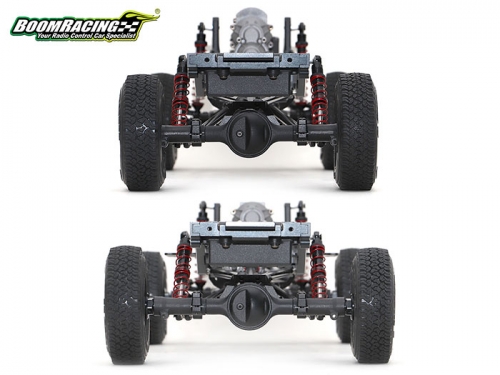 The BRX01 kit includes factory pre-built axles, transmission, transfer case and shocks. Shocks require oil to be filled (included).