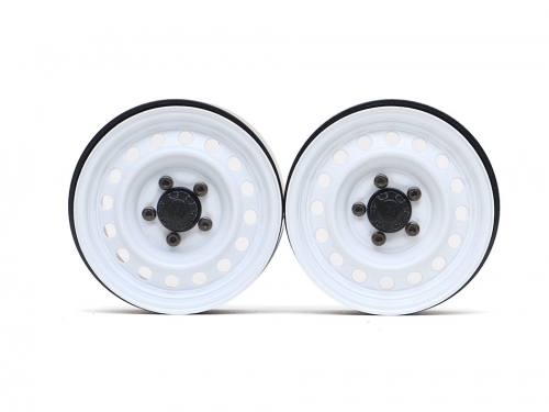 1.9" 16-Hole Classic Steelie Reversible Beadlock Wheel w/ XT504 Hub Front (2) White by Boom Racing