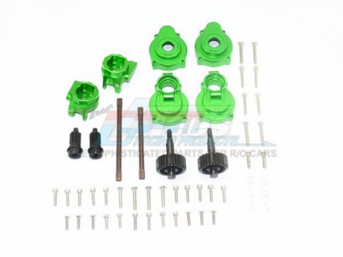Aluminium Rear Gear Box Mounts + Knuckle Arms + Spindle Gear + Rear Axle Shaft - 54Pcs Set Green by GPM Racing
