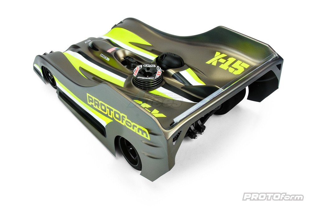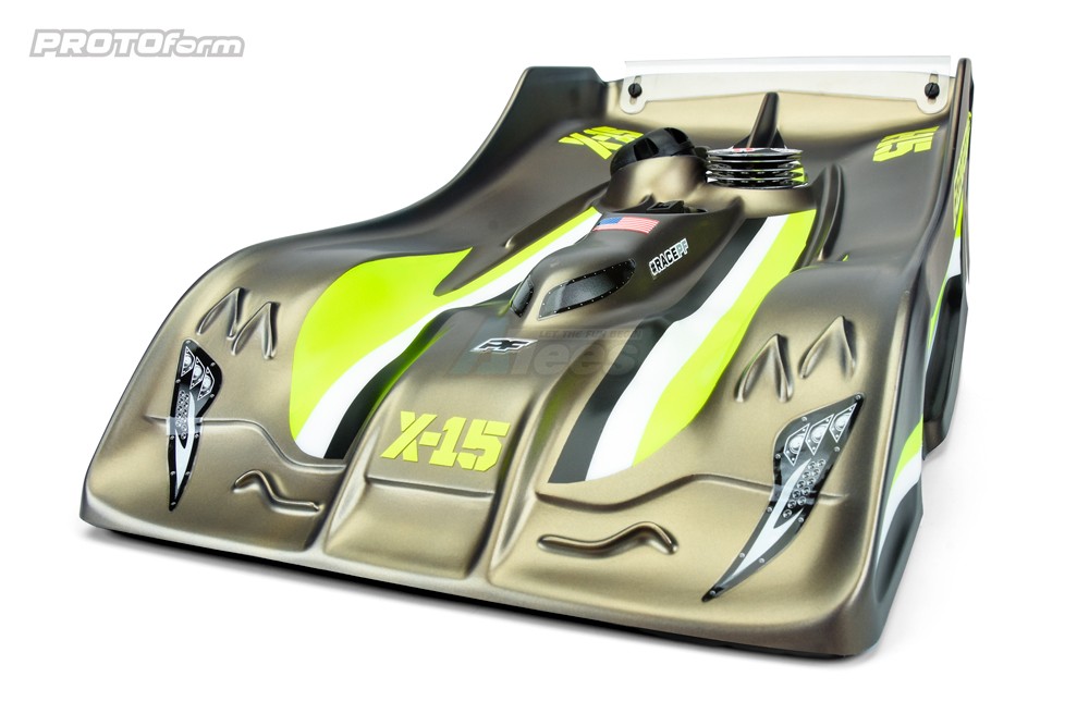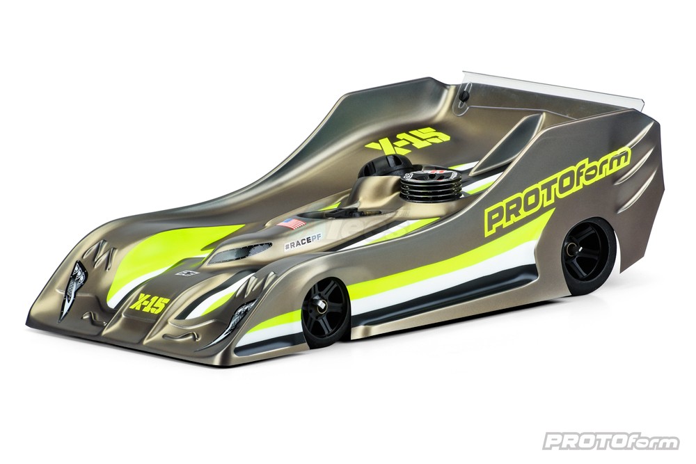 • The last four 1:8th IC On-Road IFMAR Worlds Championship winners have relied on PROTOform to finish on the top step of the podium. In our quest for a 5th straight, we're introducing the all-new PROTOform X-15 race body. The "X-15" name is legendary and carries with it an enduring reputation of innovation, sheer speed, and record-setting performance.