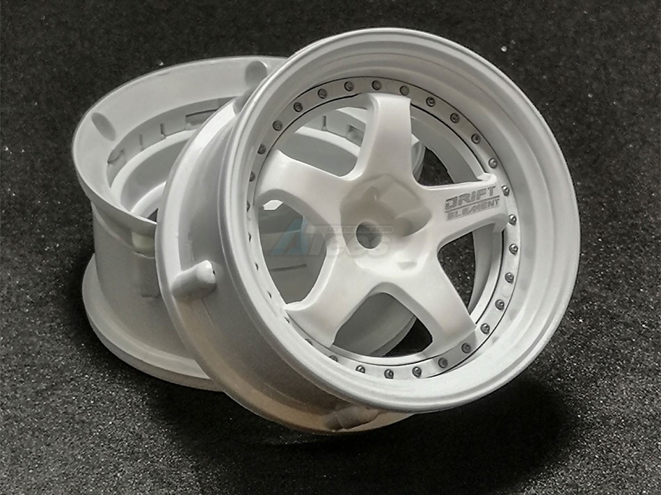 • Factory description: DS Racing Drift Element Wheel - Adj. Offset (2) / Triple White with Silver Rivets