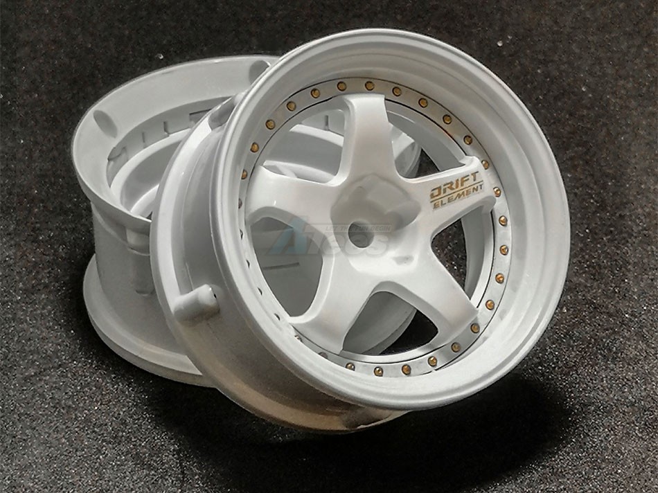 - Factory description: DS Racing Drift Element Wheel - Adj. Offset (2) / Triple White with Gold Rivets