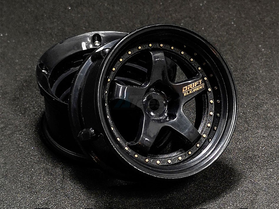 • Factory description: DS Racing Drift Element Wheel - Adj. Offset (2) / Triple Black with Gold Rivets