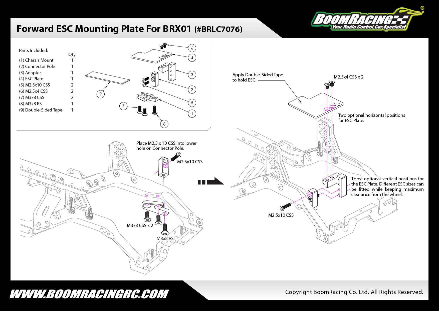 - Factory description: Boom Racing BRX01 Aluminum ESC Platform Set