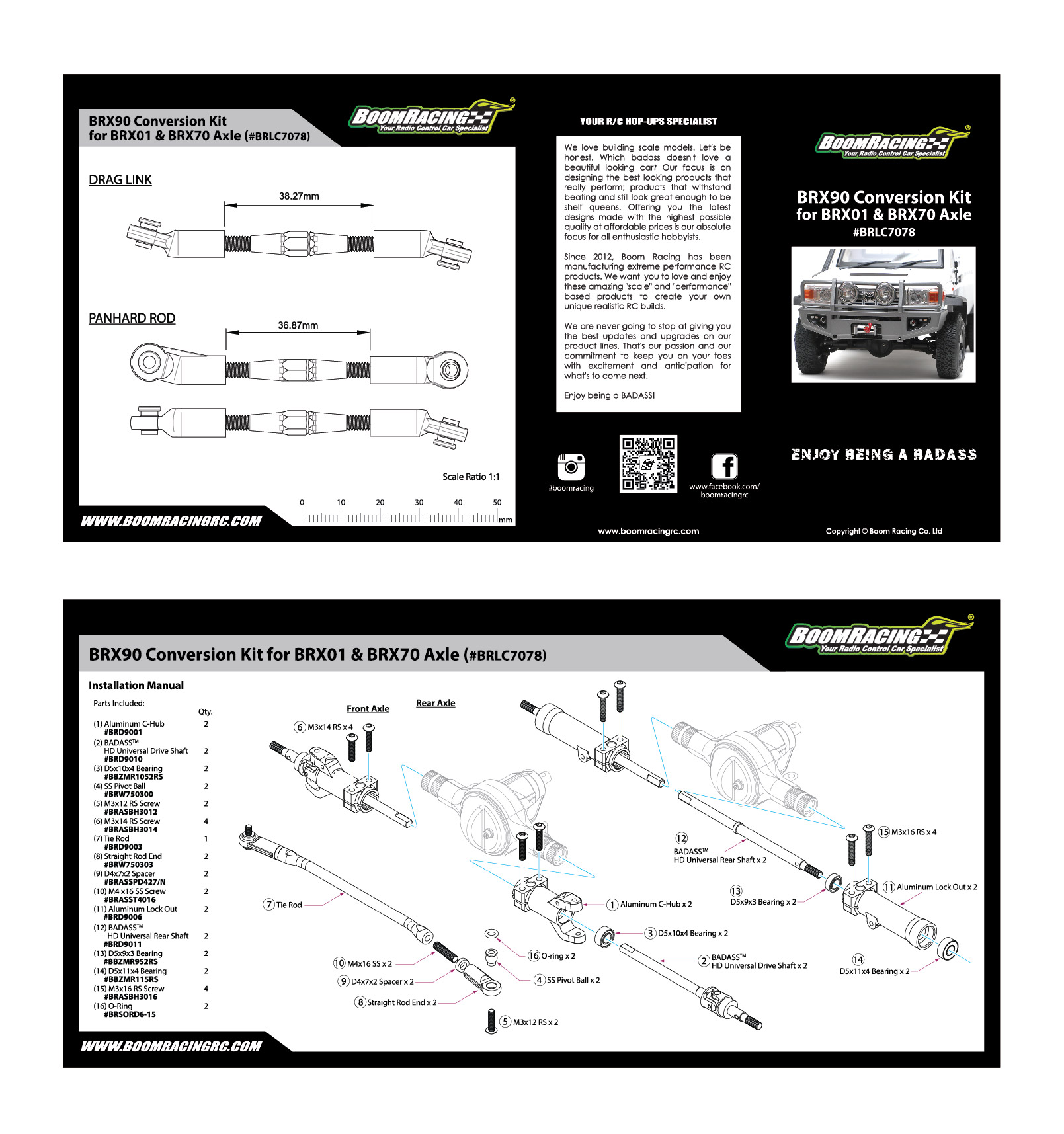 - Factory description: Boom Racing BRX90 Conversion Kit for BRX01 & BRX70 Axle