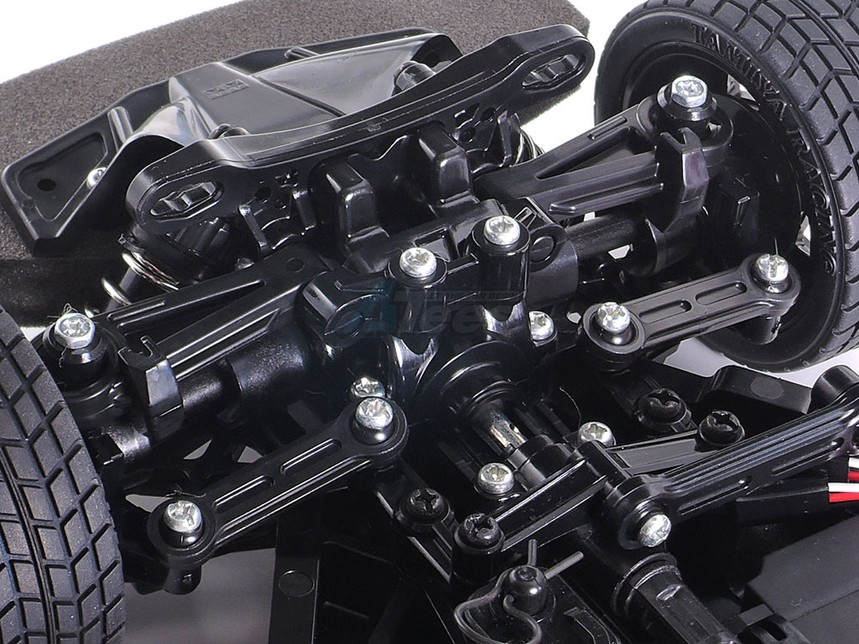 - 4-bevel differential gears and 4-wheel double wishbone suspension make for a smooth ride.