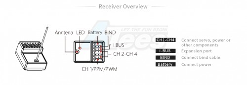 - Factory description: Fly Sky Single Antenna Bidirectional Four-way PPM/IBUS Receiver For Flysky FS-NB4