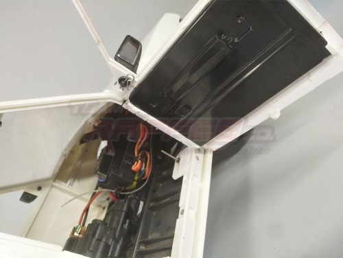 Front hood and doors on both sides open. Rear window and door open separately in two pieces.