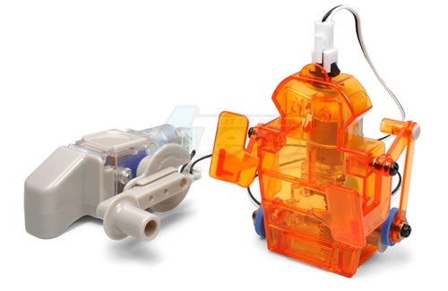 • This is an assembly kit of a robot that generates electricity by winding up the hand unit (generator) to create electricity for the motor. The motor is run by electricity, but without the need for batteries since all power is created by the supplied hand crank. Crank walking mechanism transmits the movement of the crank to arms and making the robot walk, with arms pushing like a Sumo Wrestler. The connection between the generator unit and walking mechanism is ensured by a wire harness and connector. Assembly is easy with snap-on and screw in.