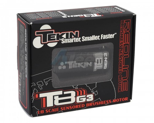 This is the Tekin Redline T8 GEN3 4038 Can 1550kV Brushless Sensored Motor, made specifically for 1/8 Truggy use. Tekin's T8 GEN3 racing motors are racing performance defined. With a stronger rotor, updated stack features and lower resistance, the T8 GEN3 motors are a versatile, unmatched and advanced power delivery system.