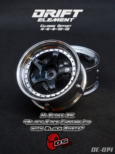 - Factory description: DS Racing Drift Element Wheel - Adj. Offset (2) / Hi Gross 2K Black Face Chrome Lip with Black Rivets