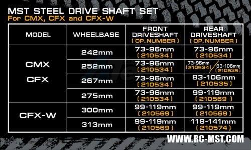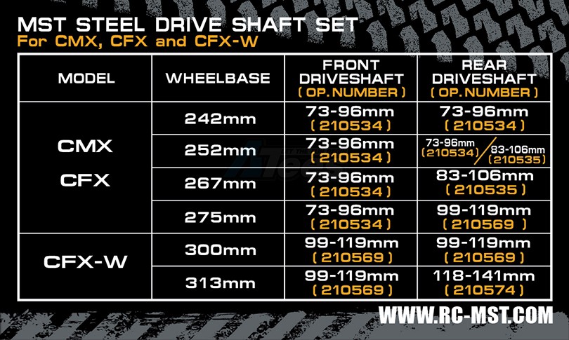 - Factory description: MST 1/8 CFX-W J45C Body w/ CFX-W Chassis Kit
