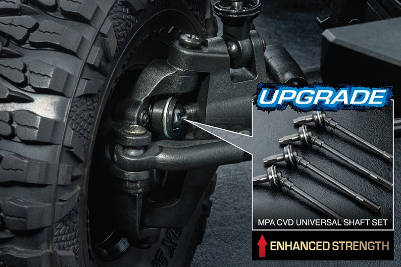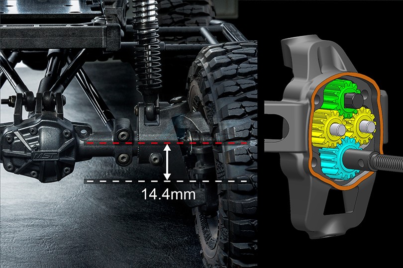 The new MPA portal axle design increases 14.4mm ground clearance and improves the possibility. The 4 gear design increases the durability also eliminating the torque twist through the chassis.