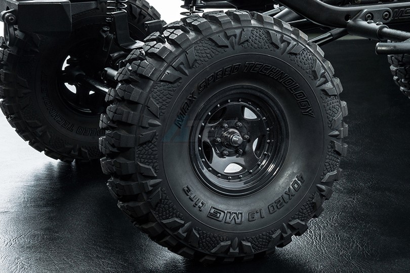 The 1.9” realistic wheel is good in both durability and appearance. The large size as a true crawler tire by the mix-materials has excellent off-road performance also keeps the on-road driving ability. Large blocks design provides excellent bite when the going gets tough!