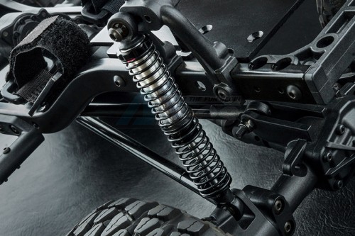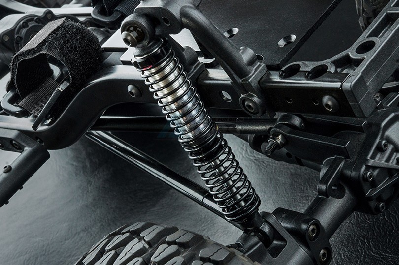 The new stroke-extended aluminum shock absorber flex amount is increased by 18%. When the player faces the sinister terrain, it provides excellent smooth shock absorption. The threaded aluminum cylinder with the spring retainer and dual-spring design, can quickly adjust the vehicle height, preload and other settings.