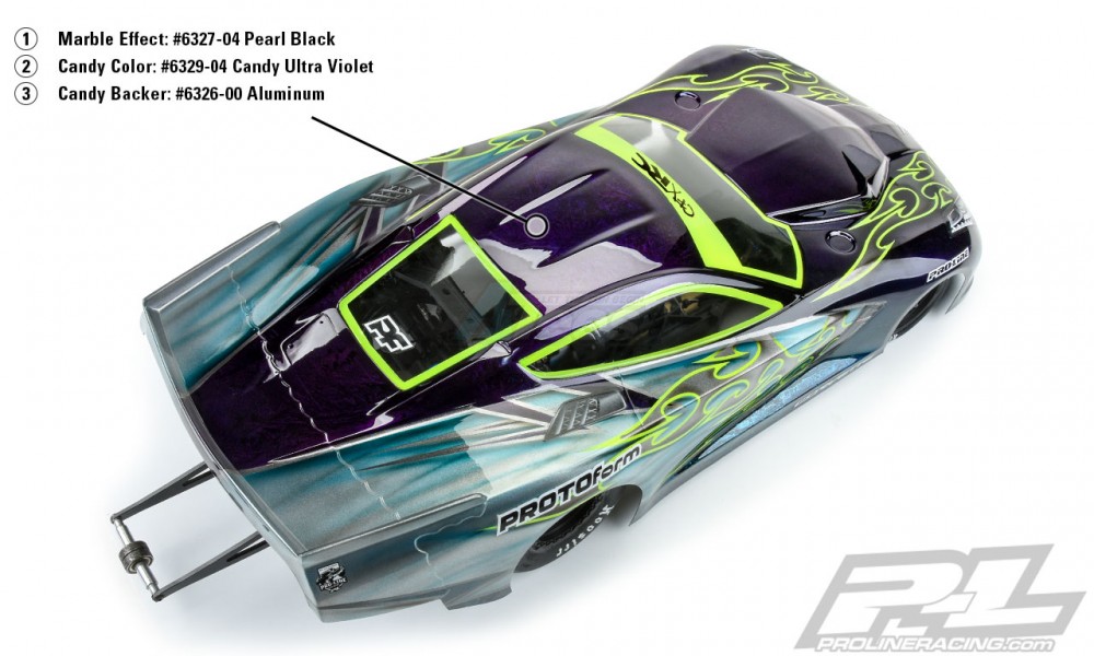 • This is the all-new Pro-Line RC Body Paint All Candy Color Set (6 Pack) - Candy Blood Red, Candy Yellow Sun, Candy Electric Green, Candy Blue Ice, Candy Ultra Violet, Candy Turquoise specially formulated for Polycarbonate. Have you been wanting a specialty paint that is easy to use and can add some depth to your color scheme? Pro-Line has a Ready to Spray 100% Transparent Water Based Dye Candy Paint that adds to any pearl or metallic colors.