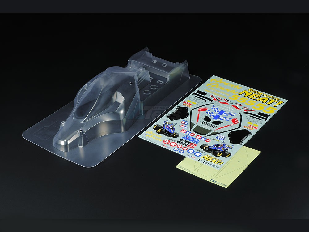 • This is a spare clear polycarbonate body parts set of the Comical Avante. The Comical Avante in the standard kit came pre-painted in metallic blue, so this one may be painted to your taste using Tamiya PS paints.