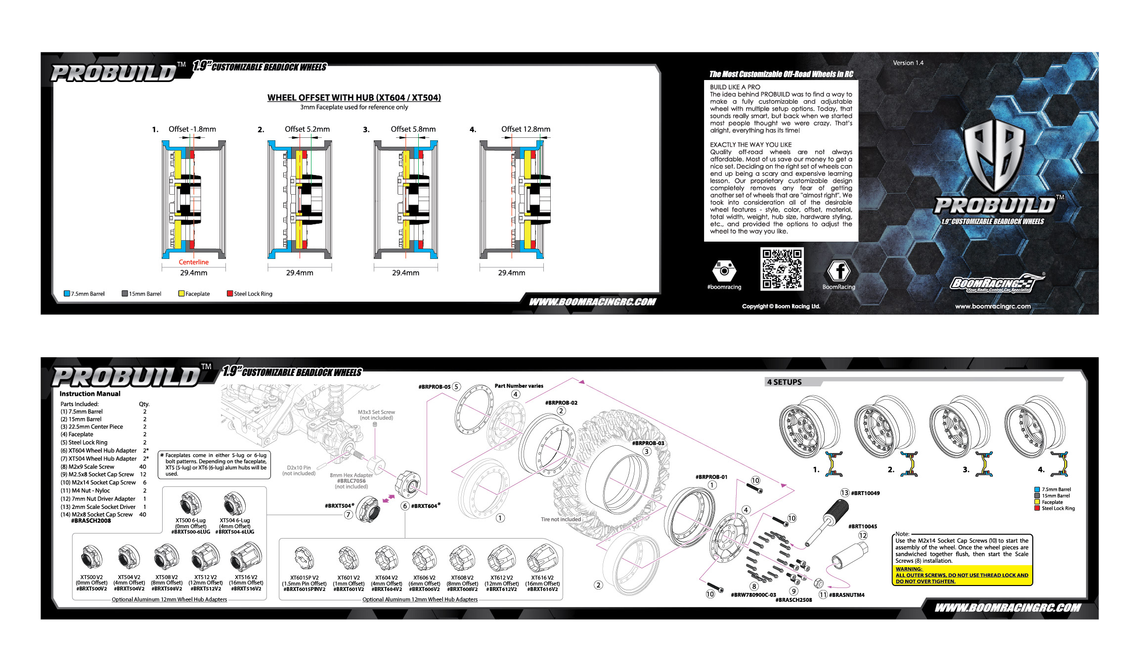 - This is ProBuild 1.9" SV5 Adjustable Offset Aluminum Beadlock Wheels (2). The Boom Racing ProBuild wheels use a patented design for quick and easy installation and setup.