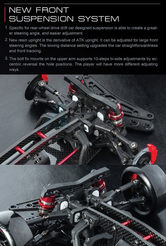 The newly designed carbon upper deck is separated from the motor mount, increasing the torsion of the car body, reducing the height of the upper deck, and more dynamic and streamlined visual looks!
