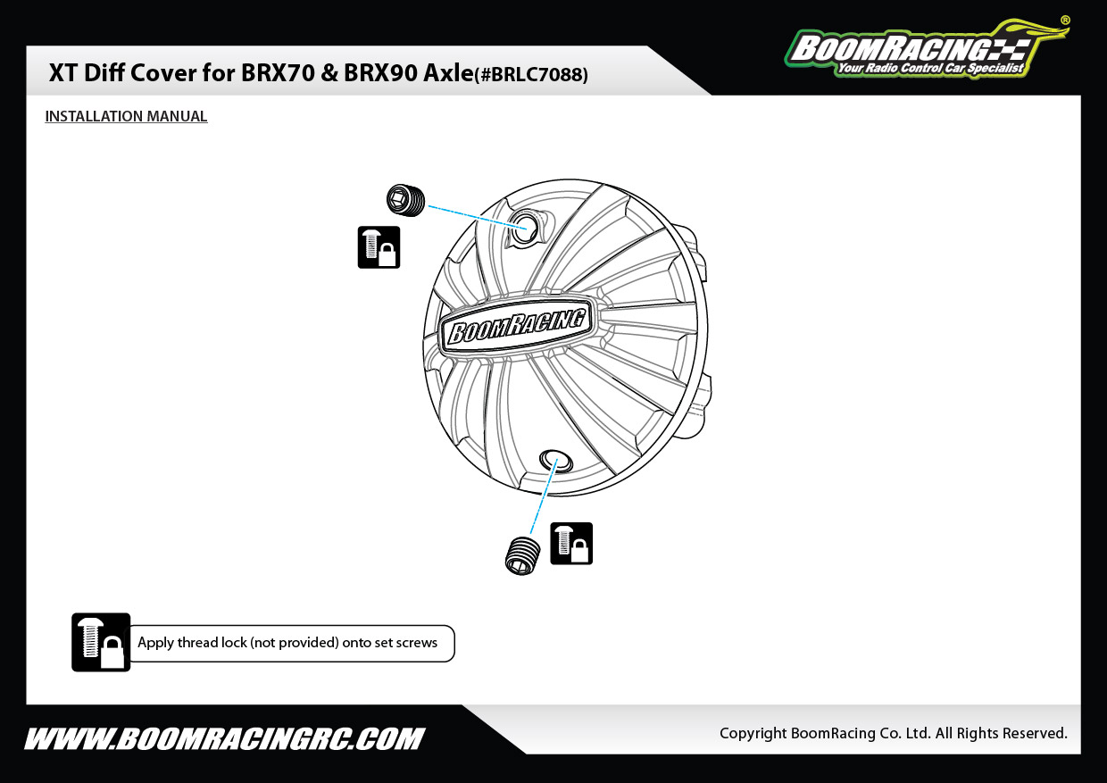- Factory description: Boom Racing Boom Racing BRX01 XT Diff Cover for BRX70 & BRX90 Axle