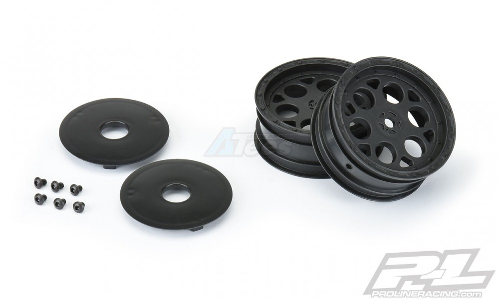 The Showtime wheel features a scale spoke pattern like full-size sprint car wheels and includes an optional dish wheel face cover if that is the look you prefer. Pro-Line's new Sprint Car wheels are made from lightweight and durable black nylon and feature a 12mm hex molded into the wheel to fit as many applications as possible. Standard 2.2" Buggy tires glue directly to the Showtime wheel, so you can choose which tires will take you to the winner's circle. It's time for you to make the big show with Pro-Line's new Showtime wheels! Get yours today!