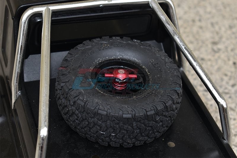 GPM Racing Aluminium Spare Tire Support Mount + Spare Tire Locking For 1/10 Crawlers (For 90047) - 4Pcs Set Red for Axial SCX10 II
