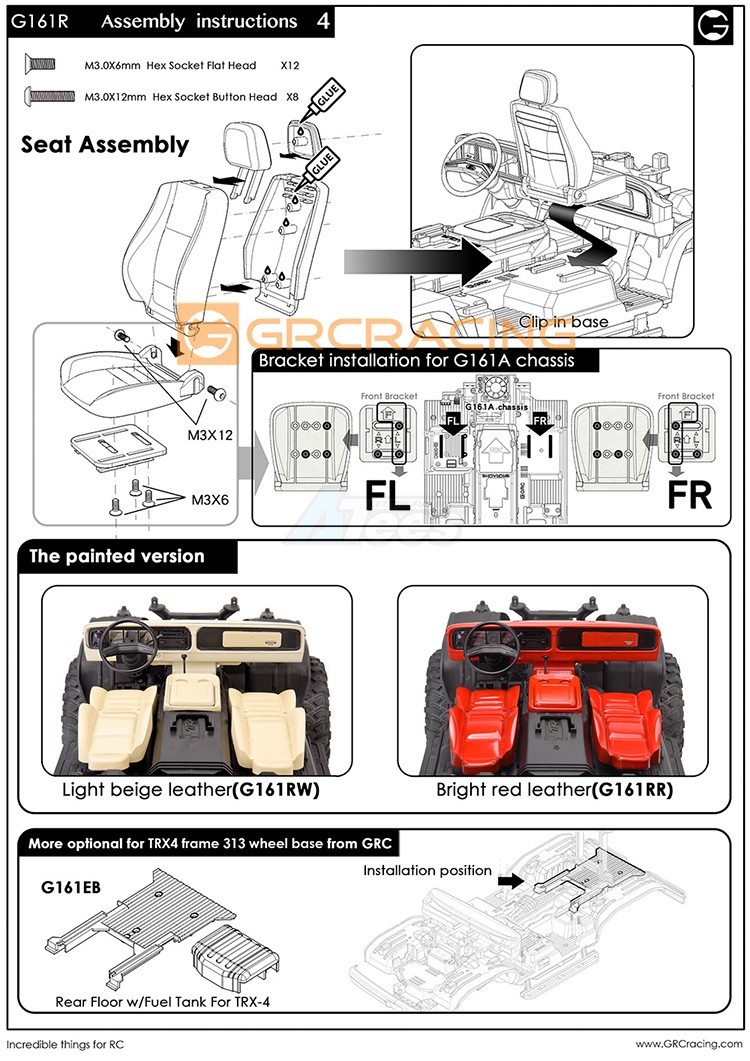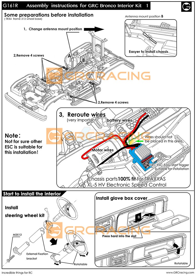 - Factory description: GRC Traxxas TRX-4 Interior Cockpit Interior Set for Traxxas TRX-4 BRONCO