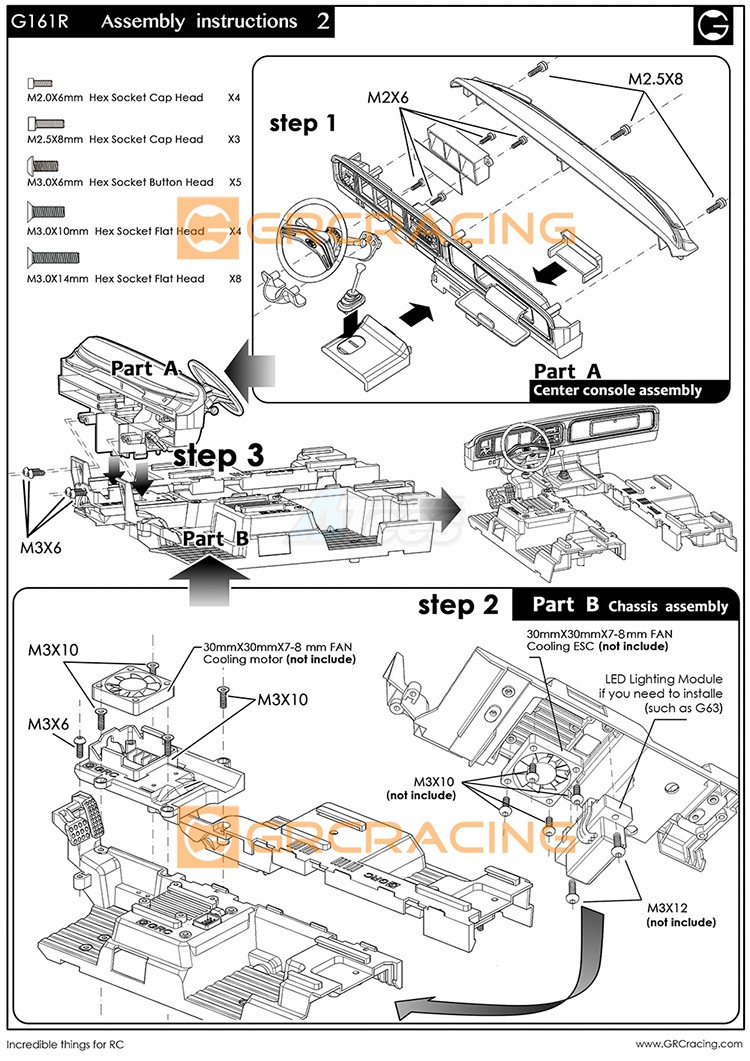 - It can DIY install the motor cooling fan, hidden ESC cooling fan, a back fan of air-conditioning outlet, instrument light, steering wheel linkage.