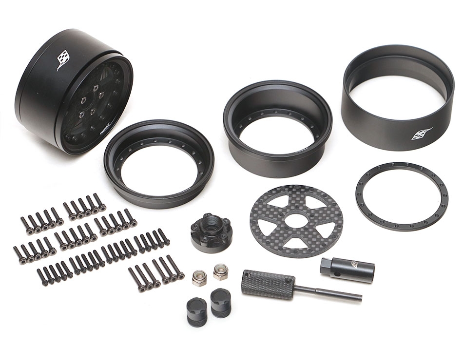 - Factory description: Boom Racing ProBuild™ 1.9" CF5 Adjustable Offset Aluminum Beadlock Wheels (2) Matte Black/Carbon Fiber