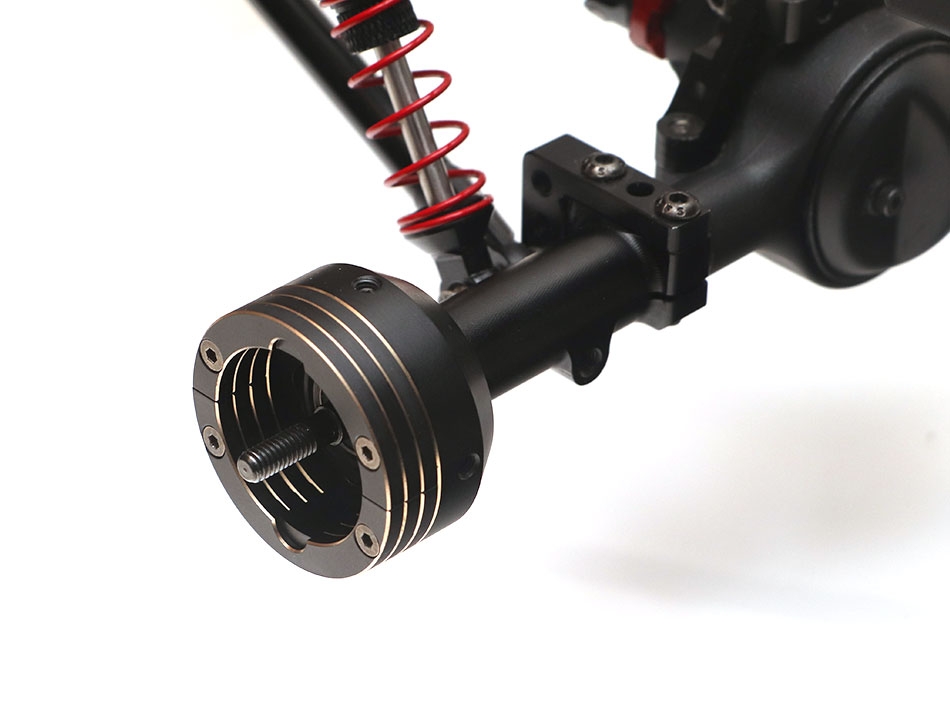 • This is a set of rear brass knuckle base weights for the BRX70 PHAT Axles. Made from high-grade brass and anodized in black color with machined edges.