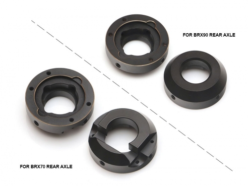 This rear brass set is specifically made for the BRX01; each brass ring has a recess for the shock mount, which is slightly different than the rear brass set for BRX80/BRX90 axle (BRD9024).