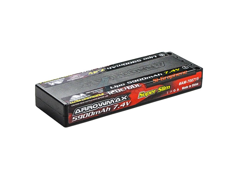 • Factory description: Arrowmax AM Lipo 5900mAh 2S TC Ultra Low Profile - 7.4V 60C Continuous 120C Burst 5mm (Si-Graphene)