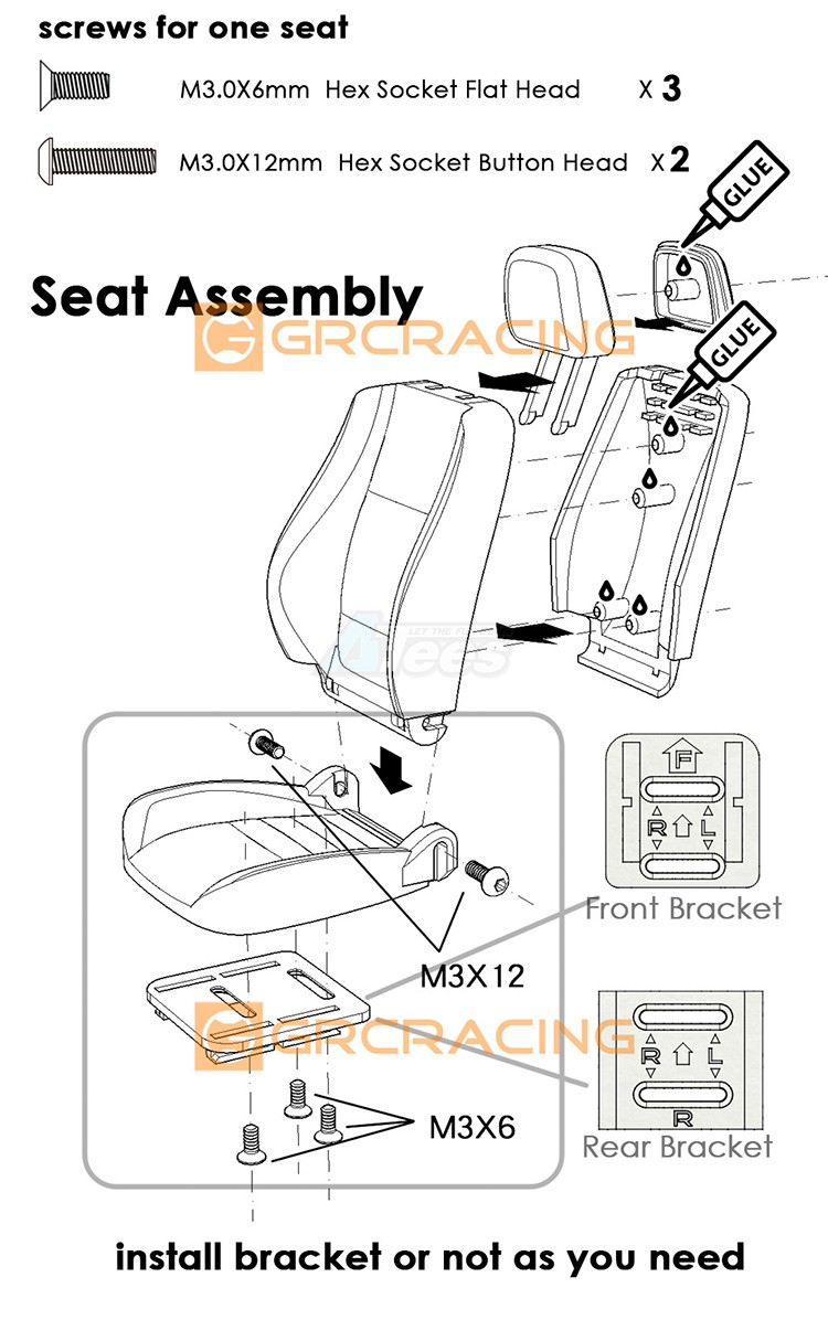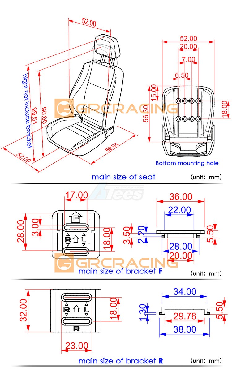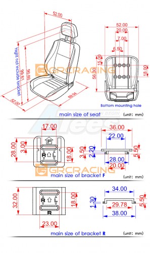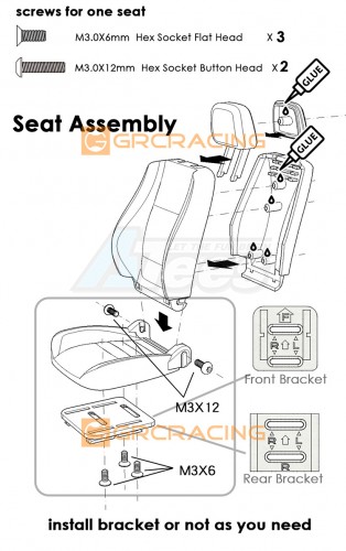 • Factory description: GRC Simulation Cab Multi-directional Adjustable Seat for 1/10 RC Crawler