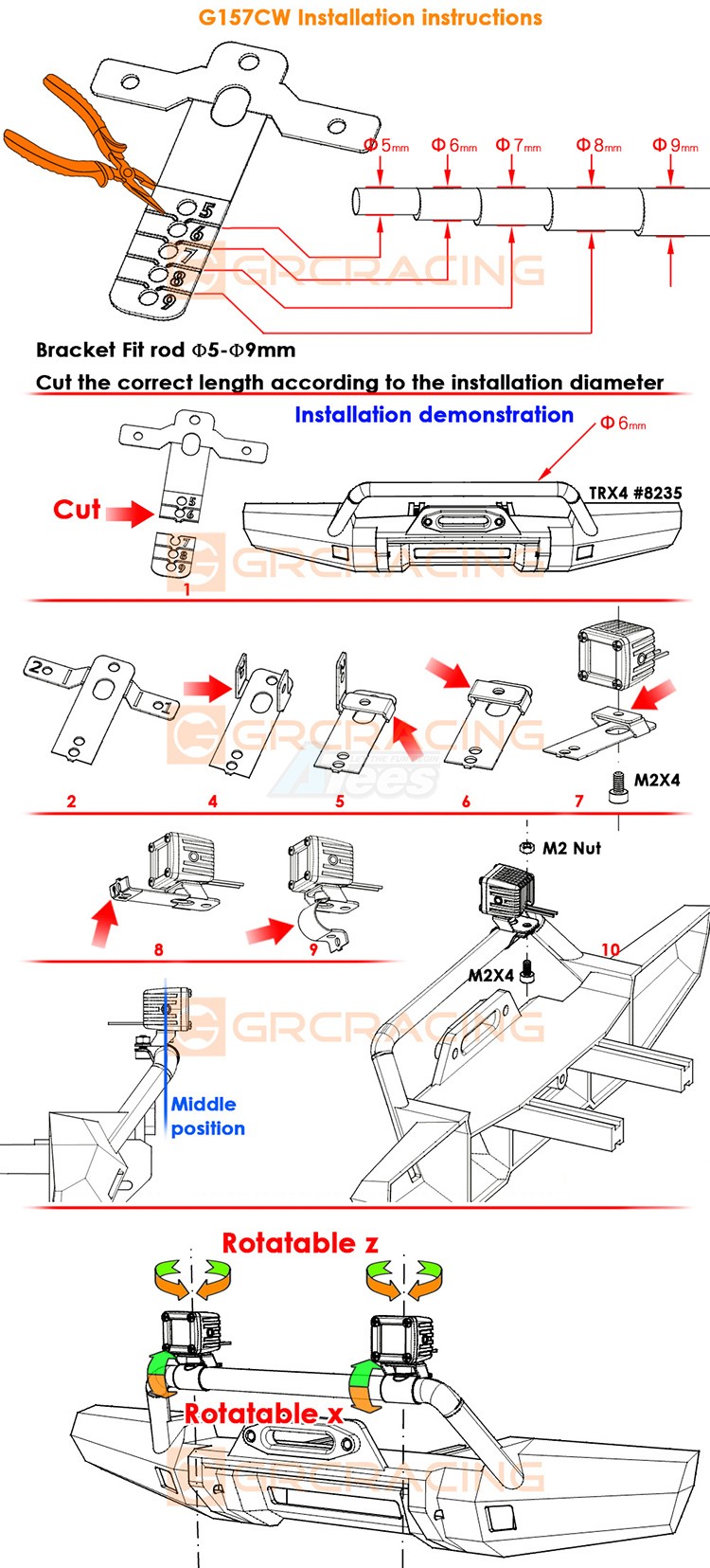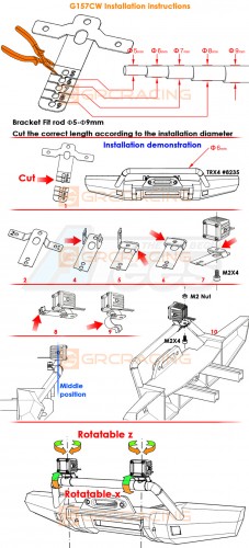 • Factory description: GRC Axial SCX10 5-9mm Various Directions Spotlight Bracket for Luggage Rack Spotlight (2)