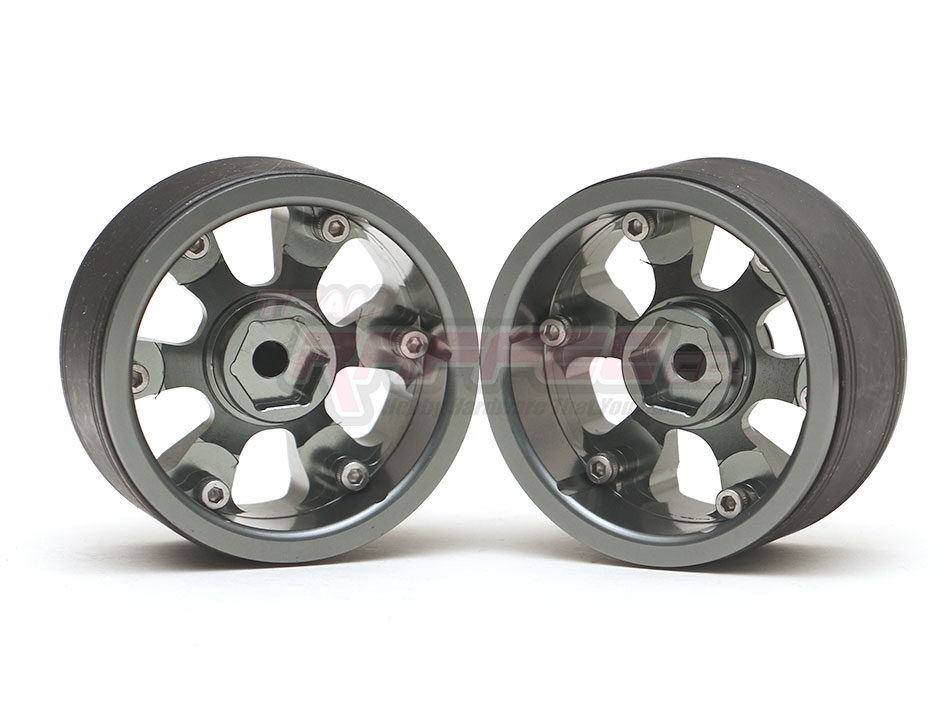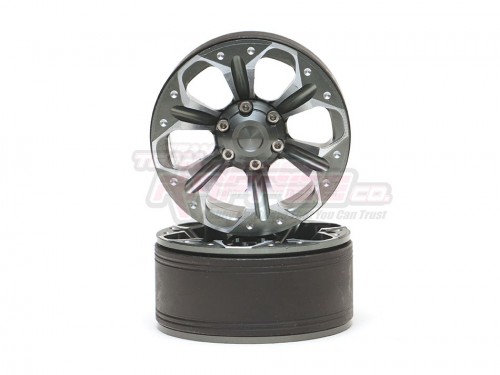 1.9" Aluminum Beadlock Wheels 6-Petals (2) Gun Metal by Team Raffee Co.