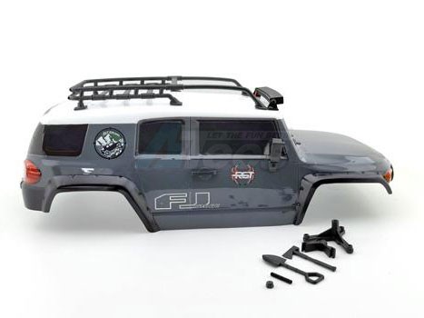 - RGT 1/10 FJ 313mm Lexan body. This body comes painted and comes with body accessories, which include roof racks, angle eye function light, spare tire, air grill, wipers, door handle, and adjustable LED lamp
