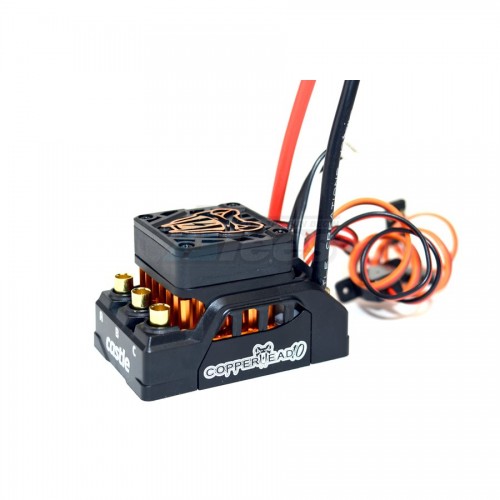 Although COPPERHEAD 10 is waterproof, it is not intended for operation while completely submerged in liquid. They can corrode when exposed to corrosive materials, such as salt water. Always rinse the ESC with clean water after exposure to corrosives or dirt. Remove the cooling fan prior to driving in wet conditions, it is not waterproof. - Product weight: 123.00 grams