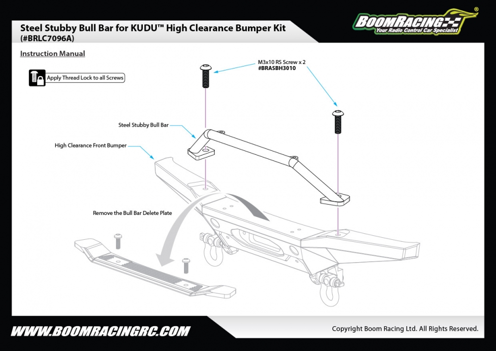 - Factory description: Boom Racing Boom Racing BRX01 Steel Stubby Bull Bar for KUDU™ High Clearance Bumper Kit