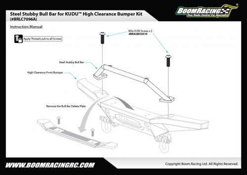 - Factory description: Boom Racing BRX01 Steel Stubby Bull Bar for KUDU™ High Clearance Bumper Kit