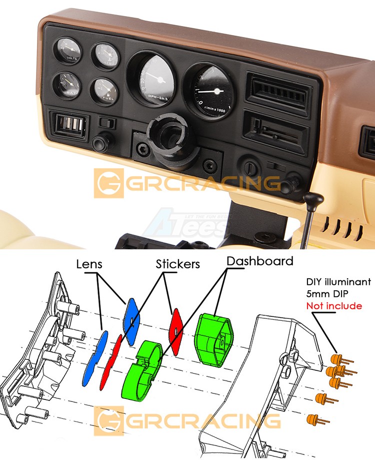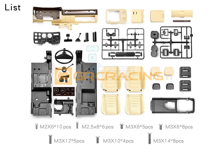 Scale ?details and perfectly fitting interior set with a nice realistic surface. The interior is easy to install into the TRX-4 original body and it's including the dashboard, seat floor, seats. - Color: Creamy-white