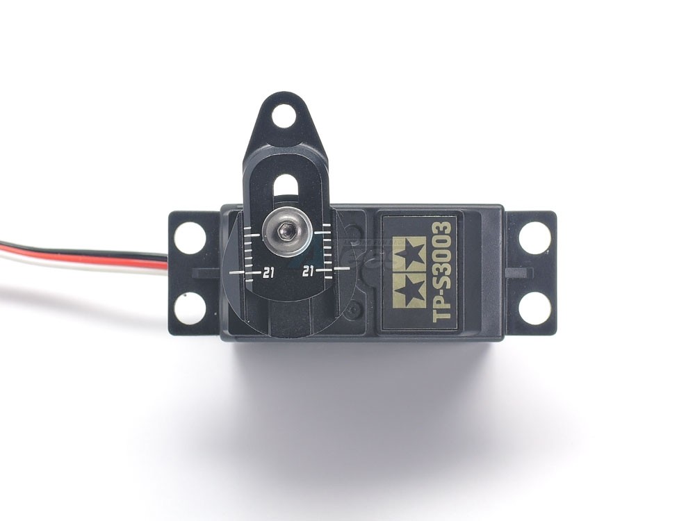 - This Tamiya aluminum adjustable servo horn allows you to finely tune your racing cars chassis steering geometry. You will be able to tune the steering range by raising or lowering the height of the arm on the servo saver.